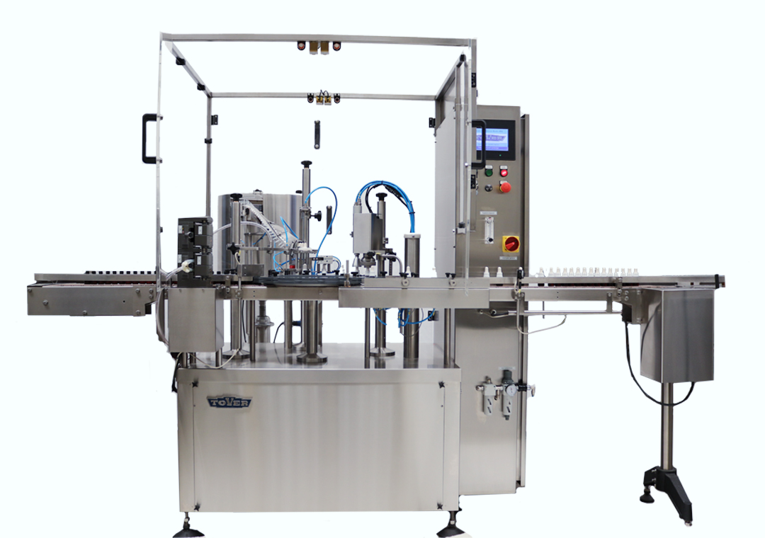 Equipo Monoblock automático, rotativo, para llenado, colocación de inserto gotero y tapa plástica a rosca.